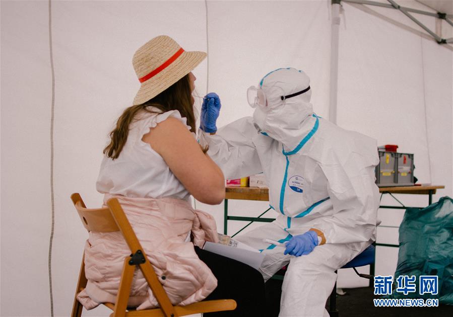 8月3日,在德国科隆的科隆-波恩机场,一名旅客接受新冠检测。 德国政府日前宣布,1日起,所有入境德国的人员都可在72小时内接受免费新冠检测。检测地点设在机场、车站、卫生局、诊所等,检测费用由德国政府承担。 新华社发(唐颖摄)