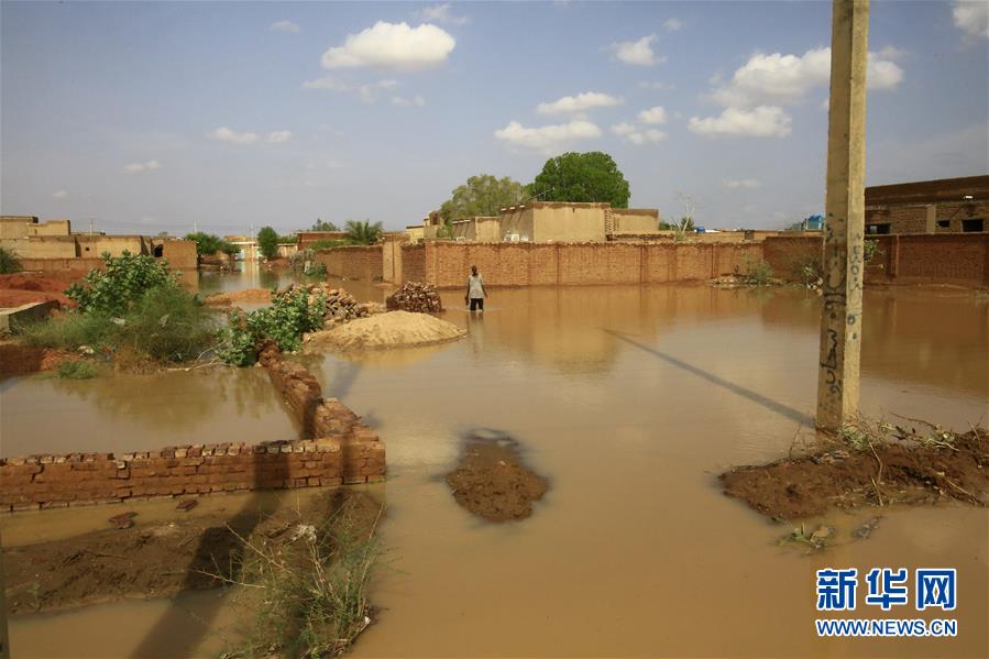 8月3日,一名居民在苏丹首都喀土穆发生洪涝灾害的区域涉水前行。 苏丹政府3日说,该国连续多日遭受暴雨和洪涝灾害,目前已导致5人死亡、3人受伤。 新华社发(穆罕默德·海德尔 摄)