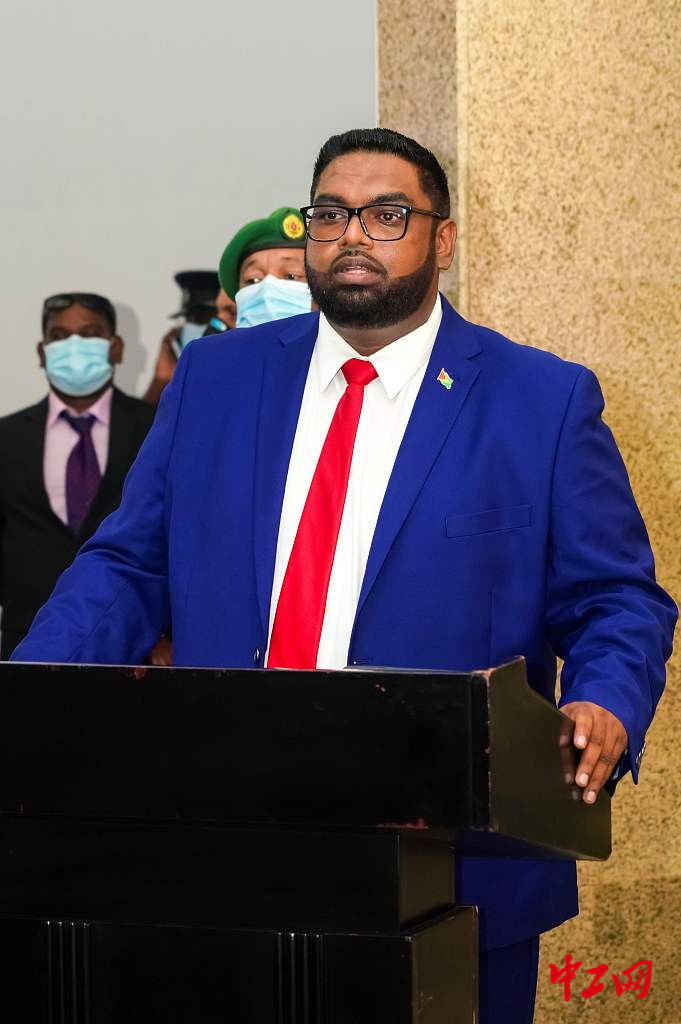 当地时间2020年8月2日,圭亚那乔治敦,圭亚那新任总统伊尔法恩·阿里(Irfaan Ali)宣誓就职,成为该国第9任总统。圭亚那首席选举官向选举委员会(GECOM)主席提交了重新计票结果,显示阿里所属的人民进步党获胜。当天公布的还有副总统、总检察长等人选名单。今年3月2日,圭亚那举行了总统大选,此前因选票结果争议,一度陷入长达5个月的僵局。人民视觉