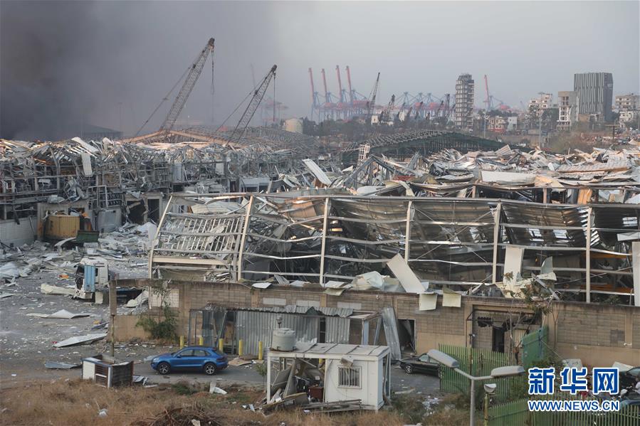 8月4日,黎巴嫩首都贝鲁特港口区发生爆炸后建筑物受损。 黎巴嫩首都贝鲁特4日傍晚发生爆炸。警方和医务人员说,爆炸至少造成10人死亡,大量建筑物受损。 新华社发(比拉尔·贾维希 摄)
