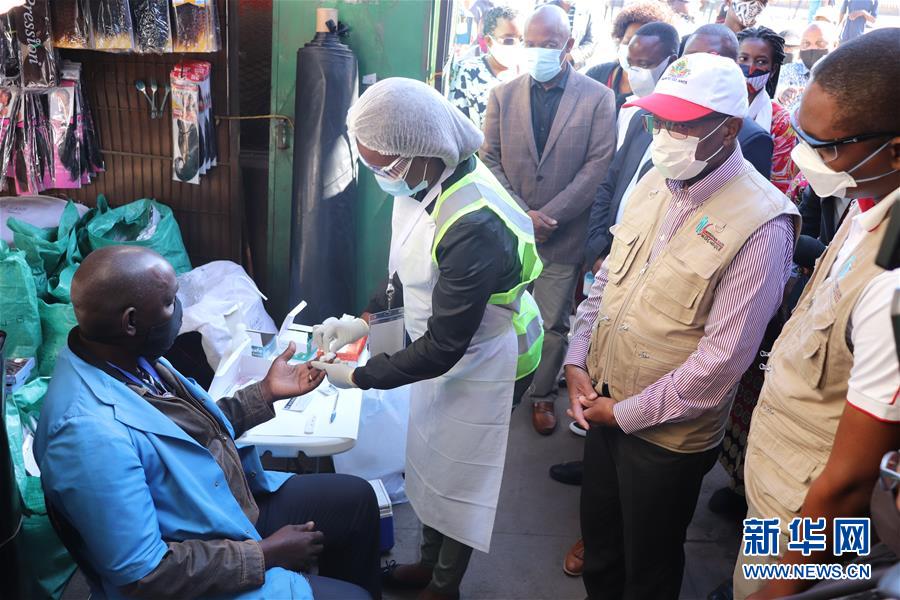 8月3日,一名医护人员在莫桑比克首都马普托为一名男子采血,进行新冠病毒抗体检测。 莫桑比克3日开始在首都马普托开启新冠流行病学调查,计划抽样检测11000人,以确定新冠病毒在社区的扩散程度。 新华社发(伊斯拉埃尔·泽法尼亚摄)