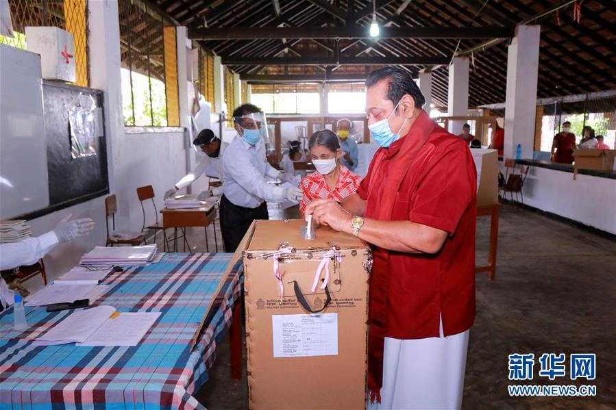 8月5日,在斯里兰卡南部城市汉班托塔,斯里兰卡总理马欣达·拉贾帕克萨在投票站投票。 因新冠疫情被迫两度推迟的斯里兰卡议会选举5日顺利举行,1100多万选民严格遵守防疫规定在全国22个选区参加投票。 新华社发