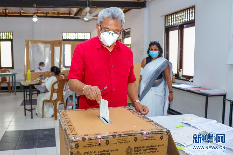 8月5日,在斯里兰卡首都科伦坡,斯里兰卡总统戈塔巴雅·拉贾帕克萨在投票站投票。 因新冠疫情被迫两度推迟的斯里兰卡议会选举5日顺利举行,1100多万选民严格遵守防疫规定在全国22个选区参加投票。 新华社发