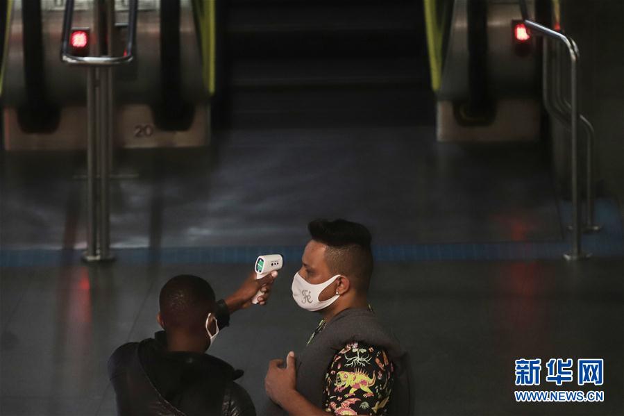 8月5日,市民在巴西圣保罗市地铁站内接受体温检测。 根据巴西卫生部5日18点40分公布的最新数据,过去24小时巴西新增新冠确诊病例57152例,累计确诊2859073例。 新华社发(拉赫尔·帕特拉索摄)