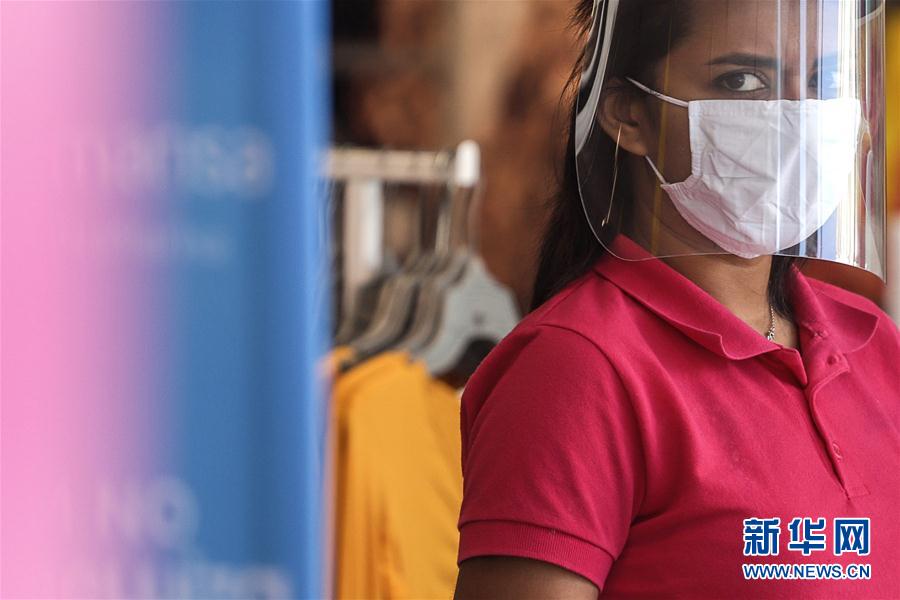8月5日,巴西圣保罗市一家服装店的店员在门口迎接顾客。 根据巴西卫生部5日18点40分公布的最新数据,过去24小时巴西新增新冠确诊病例57152例,累计确诊2859073例。 新华社发(拉赫尔·帕特拉索摄)