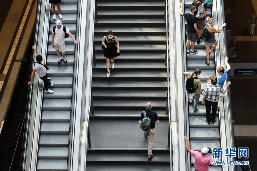 8月6日,人们在德国柏林主火车站内上下楼。 德国疾控机构罗伯特·科赫研究所6日公布的新冠疫情数据显示,截至当地时间6日0时的单日新增确诊病例为1045例,是5月7日以来首次破千。 新华社记者 单宇琦 摄