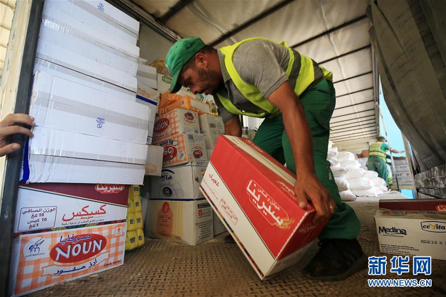 8月6日,在阿尔及利亚首都阿尔及尔,工作人员装载准备运往黎巴嫩的救援物资。阿尔及利亚红新月会当日宣布,将向黎巴嫩空运200吨食品、药品和帐篷等物资。 新华社发