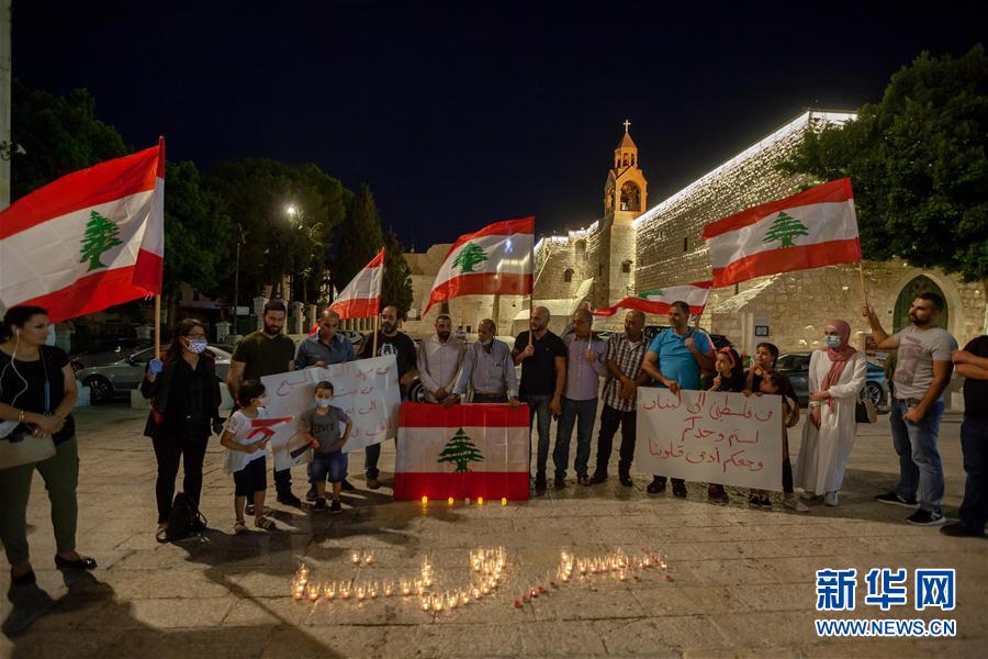 8月6日,在约旦河西岸城市伯利恒,巴勒斯坦人点燃蜡烛,表达对黎巴嫩民众的支持。 新华社发(卢埃摄)