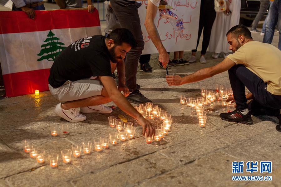 8月6日,在约旦河西岸城市伯利恒,巴勒斯坦人点燃蜡烛,表达对黎巴嫩民众的支持。 新华社发(卢埃摄)