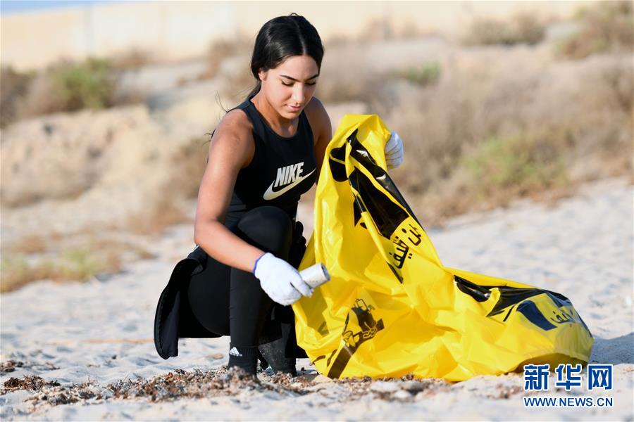 8月8日,在科威特大穆巴拉克省,志愿者在清洁海滩。 科威特环保志愿者当日在科威特大穆巴拉克省开始一项海滩清洁活动,大约40名志愿者参加了当天的活动。 新华社发(哈齐摄)