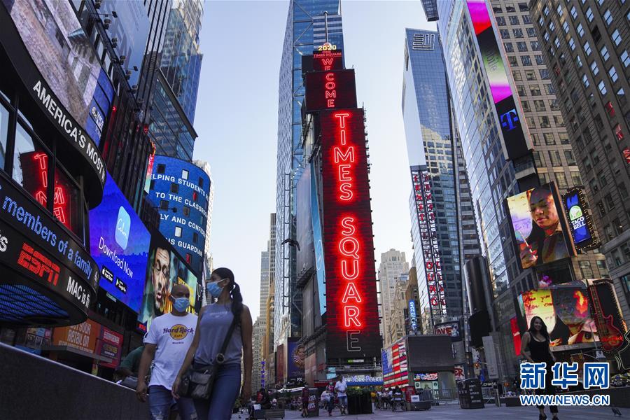 8月8日,人们走在美国纽约时报广场。 美国约翰斯·霍普金斯大学发布的新冠疫情最新统计数据显示,截至美国东部时间8日21时35分(北京时间9日9时35分),美国累计新冠确诊病例达到4995369例。 新华社记者 王迎 摄