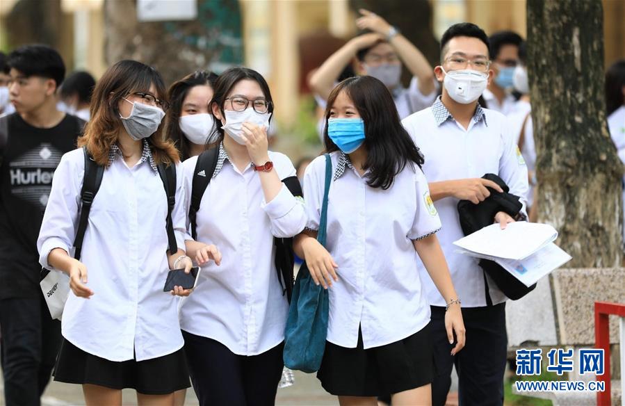 8月9日,在越南首都河内,刚刚结束数学考试的考生离开考场。 2020年越南国家高中毕业和大学入学统一考试9日在疫情下拉开帷幕,全国86万余名考生参加。 新华社/越通社