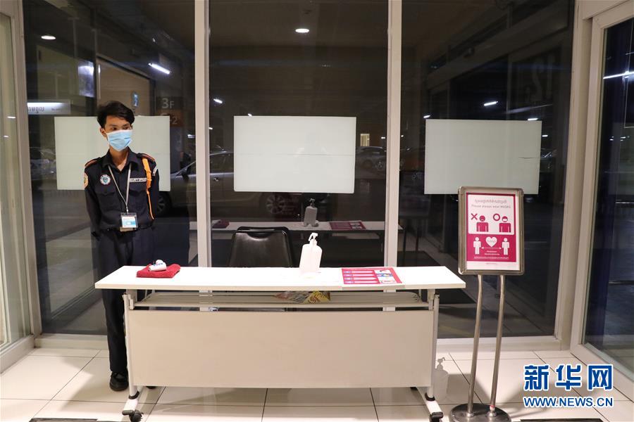 这是8月9日在柬埔寨金边一家商场入口拍摄的体温检查点。 柬埔寨卫生部9日宣布,柬埔寨新增2例新冠确诊病例,均为输入性病例,累计确诊248例,其中217例已治愈。虽然外防输入压力渐增,柬仍在逐步推动国内经济和生活在疫情防控常态化下回归正轨。 新华社发(高炳南摄)