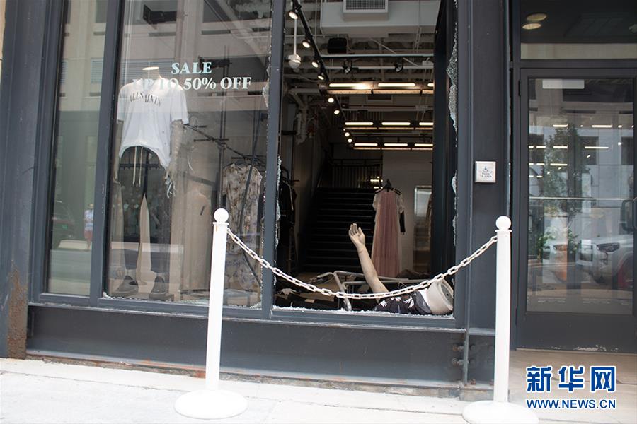 8月10日,在美国芝加哥市中心,一家服装店的橱窗被打碎。 美国第三大城市芝加哥市中心10日清晨发生大规模暴力抢劫事件,导致15人受伤,其中两人遭枪击伤势严重,100多人被警方逮捕。 新华社发(艾伦·鲁芬摄)