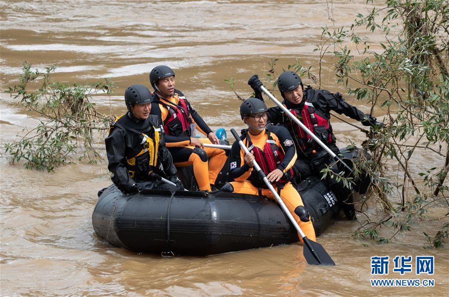 8月11日,在韩国江原道春川市,韩国士兵寻找因洪水而失踪的人员。 韩国部分地区近日遭受暴雨袭击。 新华社发(李相浩 摄)