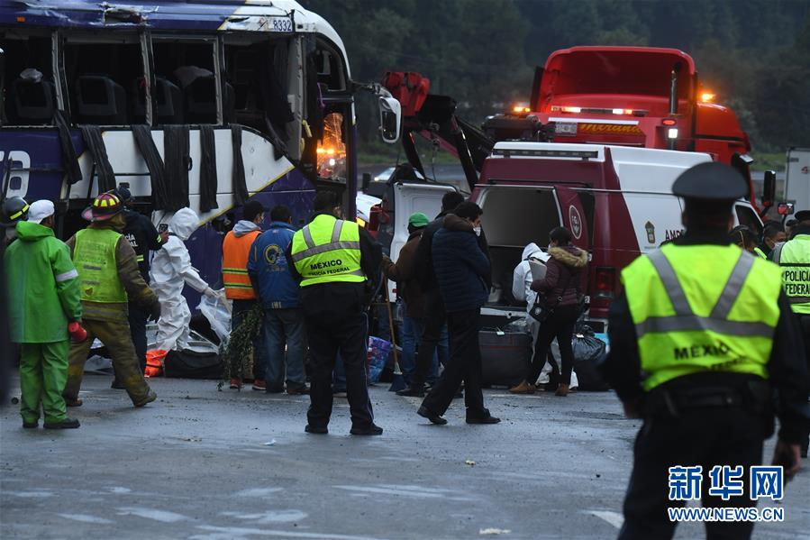 据墨西哥媒体11日报道,墨西哥中部地区当天凌晨发生一起交通事故,造成13人死亡、20多人受伤。事故发生在墨西哥首都墨西哥城至托卢卡市的公路上,一辆大客车在一休息区附近突然失控撞向路边护栏并发生侧翻。 新华社发