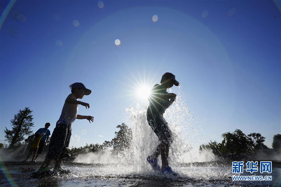8月11日,孩子们在日本群马县伊势崎市的公园内玩水。当日,该市观测到40.5摄氏度高温,为今年以来日本全国最高。 新华社/共同社