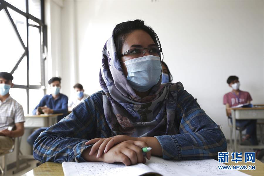 8月12日,学生戴着口罩在阿富汗喀布尔大学孔子学院上课。 阿富汗喀布尔大学孔子学院于近日复课,学生重返校园,开始新学期的学习。 新华社发(拉赫马图拉·阿里扎达摄)
