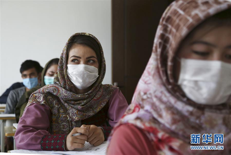 8月12日,学生戴着口罩在阿富汗喀布尔大学孔子学院上课。 阿富汗喀布尔大学孔子学院于近日复课,学生重返校园,开始新学期的学习。 新华社发(拉赫马图拉·阿里扎达摄)