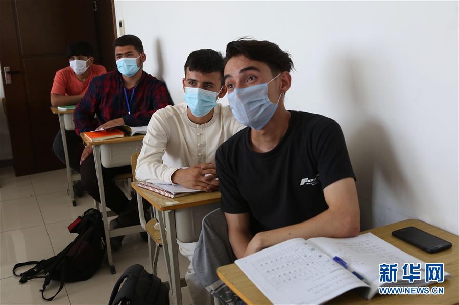 8月12日,学生戴着口罩在阿富汗喀布尔大学孔子学院上课。 阿富汗喀布尔大学孔子学院于近日复课,学生重返校园,开始新学期的学习。 新华社发(拉赫马图拉·阿里扎达摄)