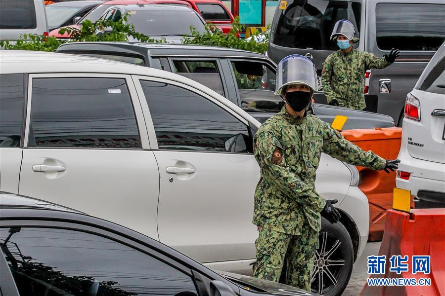 8月12日,警察在菲律宾马尼拉街头进行防疫检查。 世界卫生组织12日最新数据显示,全球新冠确诊病例累计已超2000万例。 新华社发(乌马利摄)