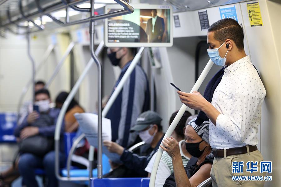 8月12日,人们佩戴口罩在巴西圣保罗搭乘地铁。 根据巴西卫生部12日傍晚公布的最新数据,过去24小时巴西新增新冠确诊病例55155例,累计确诊3164785例。巴西圣保罗州州长若昂·多利亚12日宣布,他本人新冠病毒检测结果呈阳性,但目前身体状况良好,属无症状感染。 新华社发(莱奥·巴里拉里摄)