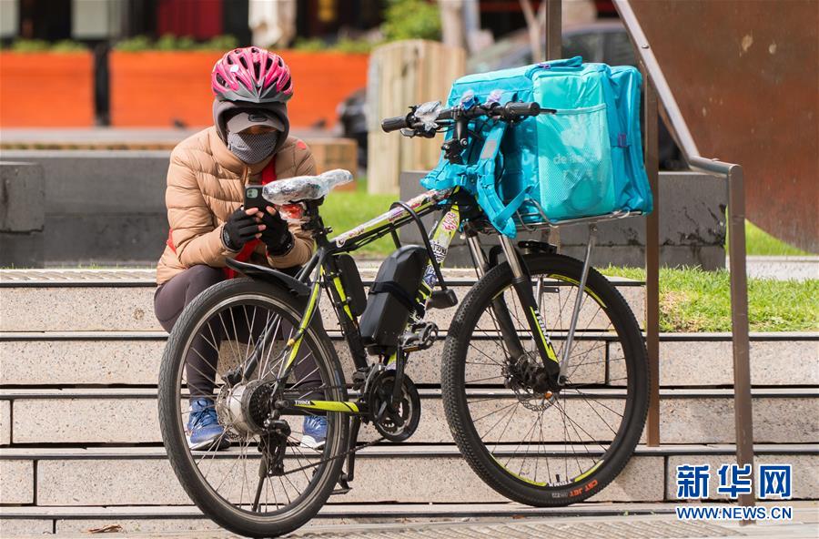 8月12日,一名佩戴口罩的送餐员在澳大利亚悉尼的街边等待。 世界卫生组织12日最新数据显示,全球新冠确诊病例累计已超2000万例。 新华社发(胡泾辰摄)