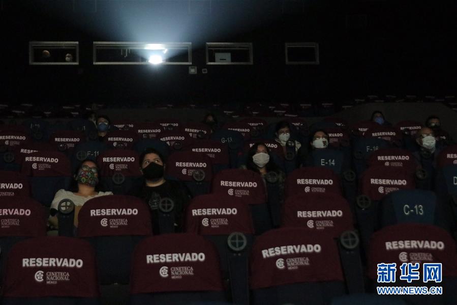 8月12日,人们在墨西哥首都墨西哥城一家电影院内观看电影。 近日,墨西哥首都墨西哥城的电影院在严格控制客流量和做好防疫工作的前提下开始恢复营业。 新华社发(伊斯雷尔·罗萨斯摄)