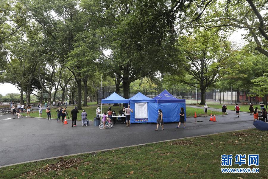 8月13日,在美国纽约日落公园,人们在一处临时新冠病毒检测点排队等待检测。 纽约市长德布拉西奥12日表示,由于近期纽约布鲁克林日落公园地区的新冠病毒检测阳性率明显高于纽约市平均水平,市政府将加强对该地区的新冠病毒检测力度。过去两周该地区超过3300名居民的检测结果显示,该地区的检测阳性率超过6%,远远高于纽约市约1%的平均水平。 新华社记者 王迎 摄