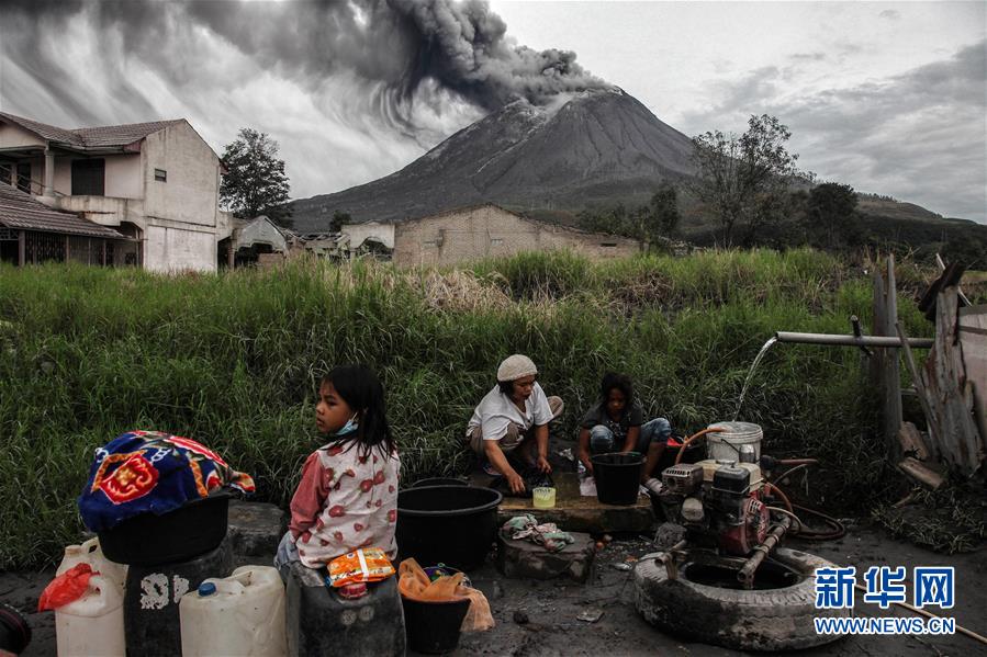 8月14日,人们在印尼北苏门答腊省正在喷发的锡纳朋火山附近洗衣服。 锡纳朋火山近期剧烈活动。锡纳朋火山位于印尼北苏门答腊省卡罗县,在沉寂近400年后于2010年首度喷发。该火山近年来进入活跃期,2014年2月的喷发造成16人死亡,上千人流离失所。2019年5月以来,该火山一直处于三级警戒级别。印尼是世界上火山最多的国家之一,境内现有129座活火山。 新华社发(达马尼克摄)