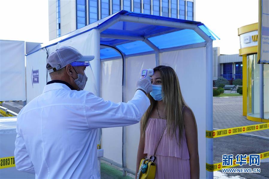 8月15日,在乌兹别克斯坦首都塔什干火车站,工作人员为乘客测量体温。 乌兹别克斯坦国家疫情防控特别委员会13日决定,自本月15日起,恢复国内航空、铁路运输和公共交通,疗养院、旅馆、博物馆、理发店和私立教育培训机构等恢复营业。 新华社发(扎法尔摄)
