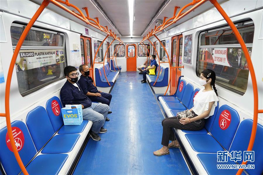 8月15日,在乌兹别克斯坦首都塔什干,戴口罩的乘客搭乘地铁出行。 乌兹别克斯坦国家疫情防控特别委员会13日决定,自本月15日起,恢复国内航空、铁路运输和公共交通,疗养院、旅馆、博物馆、理发店和私立教育培训机构等恢复营业。 新华社发(扎法尔摄)
