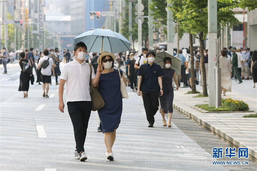 8月15日,在日本东京,银座街头的行人撑伞遮阳。 受太平洋高气压影响,日本多地近来持续高温,仅东京地区本月因中暑死亡的就有26人。 新华社记者 杜潇逸 摄