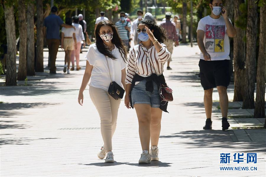 8月16日,人们佩戴口罩走在摩洛哥拉巴特街头。 根据摩洛哥16日的统计数据,该国累计新冠确诊病例达42489例。 新华社发(查迪摄)