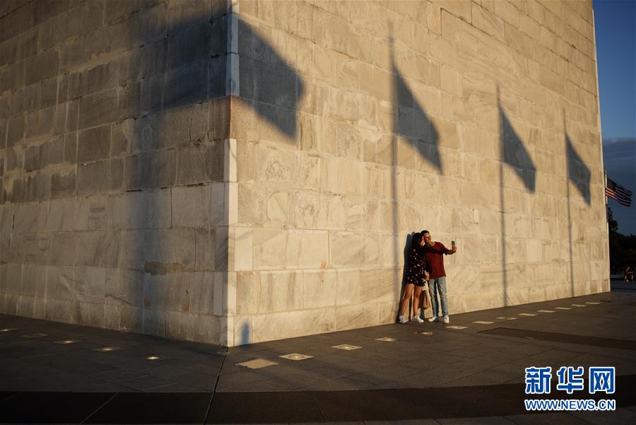 8月16日,人们在美国首都华盛顿的华盛顿纪念碑旁合影。 美国约翰斯·霍普金斯大学16日发布的新冠疫情最新统计数据显示,截至美国东部时间16日18时27分(北京时间17日6时27分),美国新冠累计死亡病例达170019例,累计确诊5401167例。 新华社发(沈霆 摄)