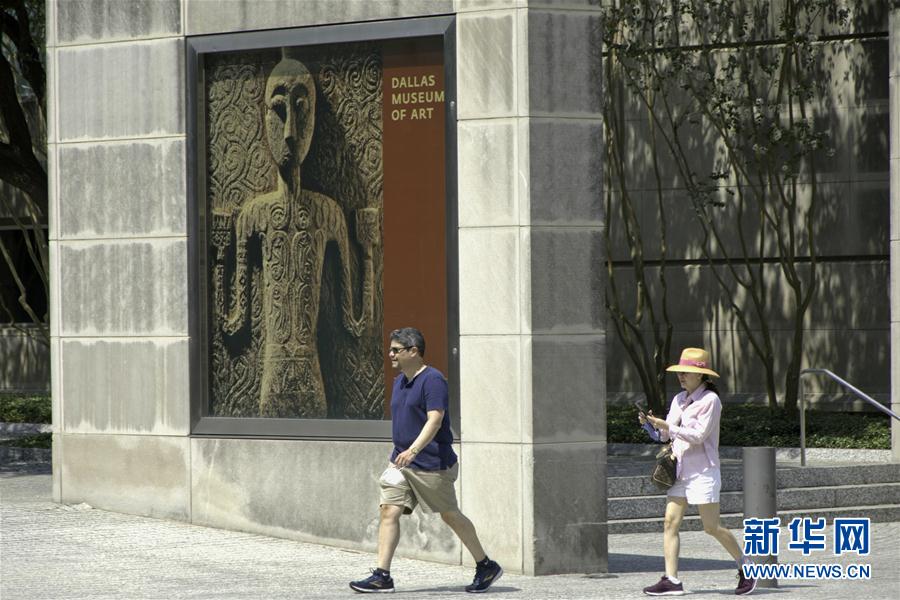 8月16日,两名参观者准备进入美国达拉斯艺术博物馆。 美国达拉斯几家大型博物馆近日陆续重新开放。 新华社发(田丹摄)