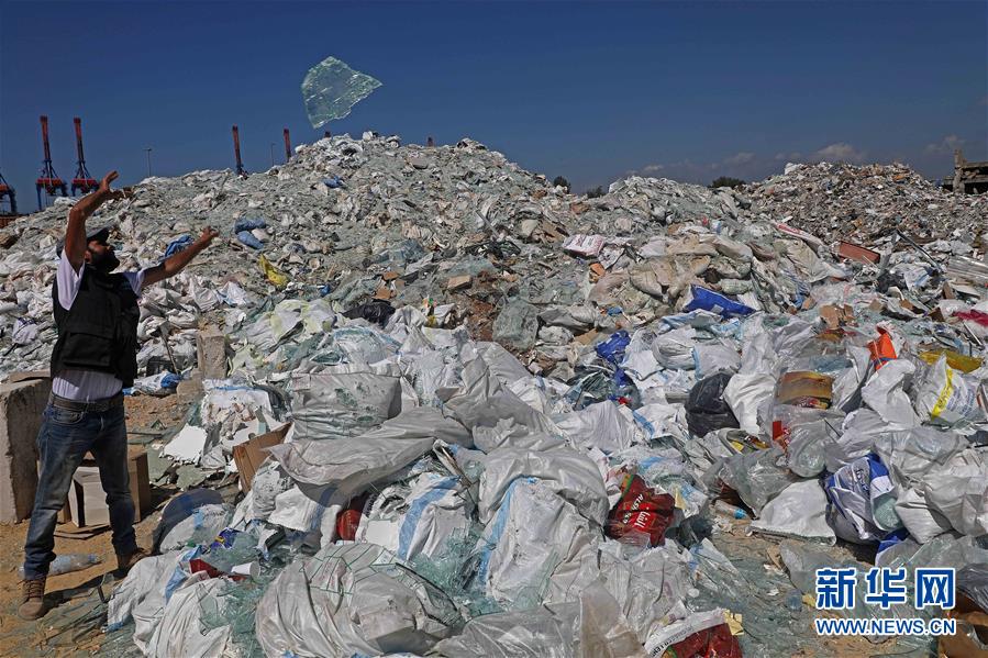 8月16日,在黎巴嫩首都贝鲁特,工作人员整理因爆炸而产生的玻璃碎渣,以便集中清理回收。 黎巴嫩首都贝鲁特港口区4日傍晚发生大爆炸,造成至少177人死亡、6000多人受伤。 新华社发(比拉尔·贾维希摄)