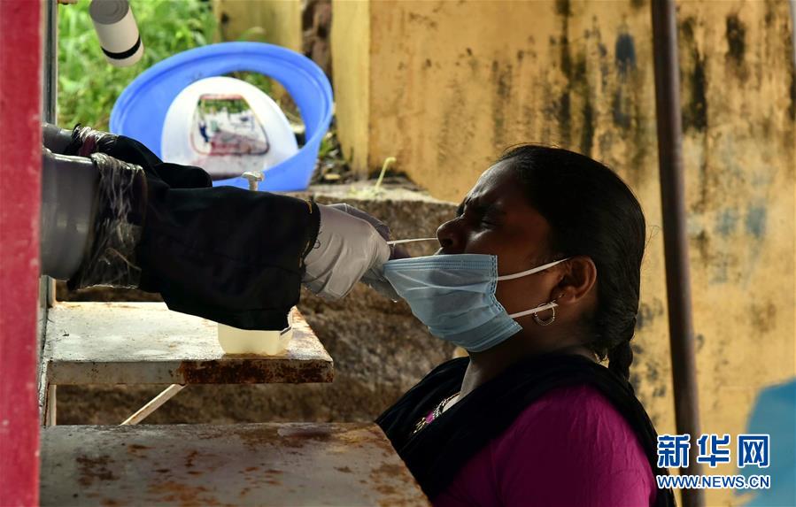 8月17日,在印度海得拉巴,一名女子接受新冠病毒检测取样。 印度卫生部17日报告,该国累计新冠确诊病例达2647663例。 新华社发