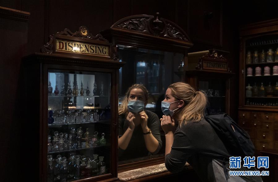 8月17日,在英国伦敦,工作人员在科学博物馆举行的媒体开放日上观看一个“老药房”展品。 因疫情关闭数月的英国科学博物馆将于8月19日起对公众开放。参观者需提前网上预约参观时段,全程佩戴口罩并保持安全距离。 新华社记者 韩岩 摄