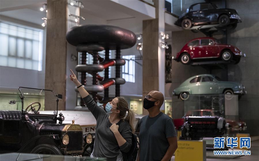 8月17日,在英国伦敦,工作人员在科学博物馆举行的媒体开放日上观看展品。 因疫情关闭数月的英国科学博物馆将于8月19日起对公众开放。参观者需提前网上预约参观时段,全程佩戴口罩并保持安全距离。 新华社记者 韩岩 摄