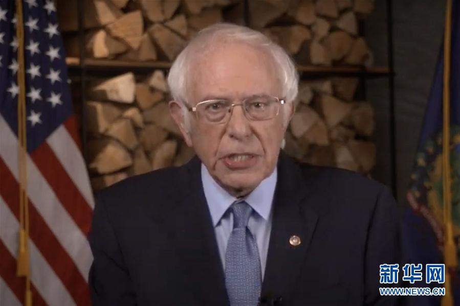8月17日,美国佛蒙特州联邦参议员伯尼·桑德斯在线出席美国民主党全国代表大会(视频截图)。 新华社发(美国民主党全国代表大会供图)