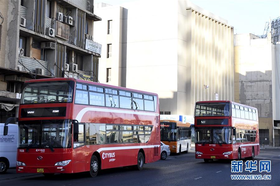 8月18日,公交车行驶在科威特首都科威特城的道路上。 新华社发(加齐摄)