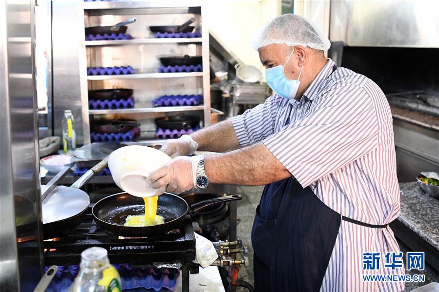 8月18日,在科威特首都科威特城,一名餐馆厨师给顾客准备食物。 新华社发(加齐摄)