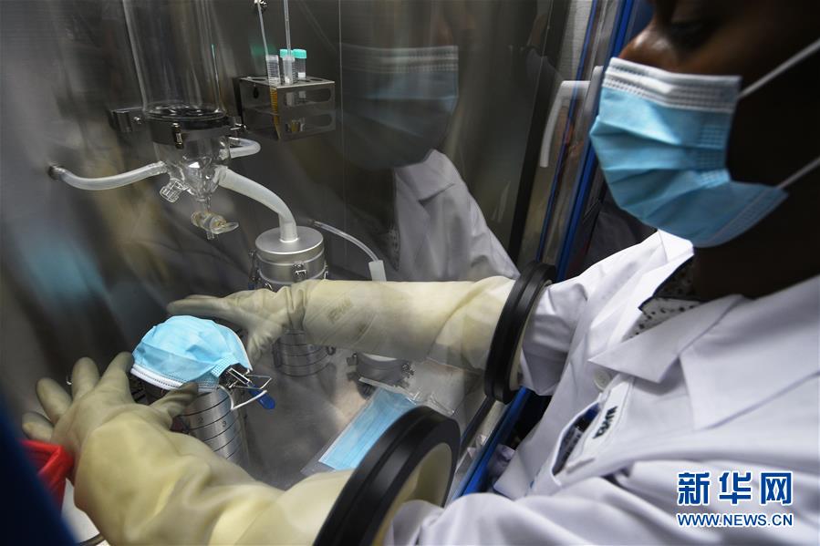 8月18日,新加坡实科检测公司的工作人员在实验室里对外科口罩进行细菌过滤效率检测。 新加坡实科检测公司提供ASTM标准(美国材料实验协会标准)的外科口罩检测服务,对口罩质量进行把关。 新华社发(邓智炜摄)