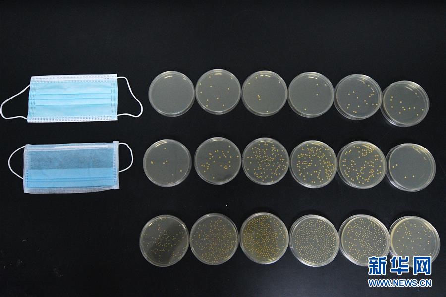 这是8月18日拍摄的新加坡实科检测公司实验室对口罩进行细菌过滤效率检测后的结果对比,上排为外科口罩检测结果,中排为普通口罩检测结果,下排为无口罩检测结果。 新加坡实科检测公司提供ASTM标准(美国材料实验协会标准)的外科口罩检测服务,对口罩质量进行把关。 新华社发(邓智炜摄)