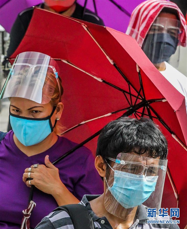 8月19日,菲律宾大马尼拉都市区的居民佩戴口罩和防护面罩出行。 菲律宾卫生部19日通报,该国累计新冠确诊病例达到173774例。 新华社发(乌马利摄)