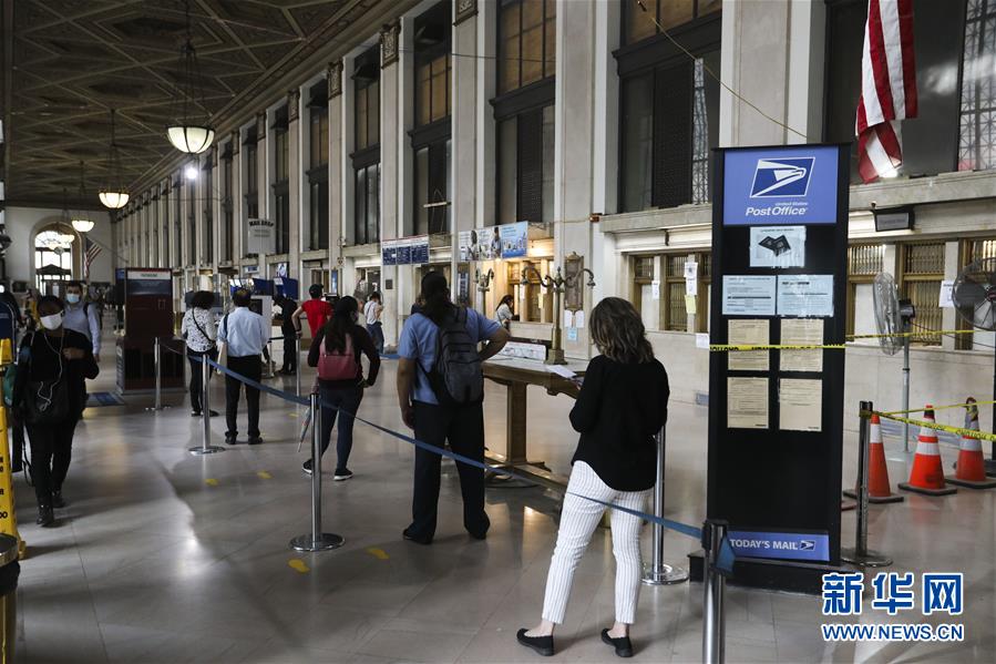 8月19日,顾客在美国纽约一个邮局等待办理业务。 新华社记者 王迎 摄