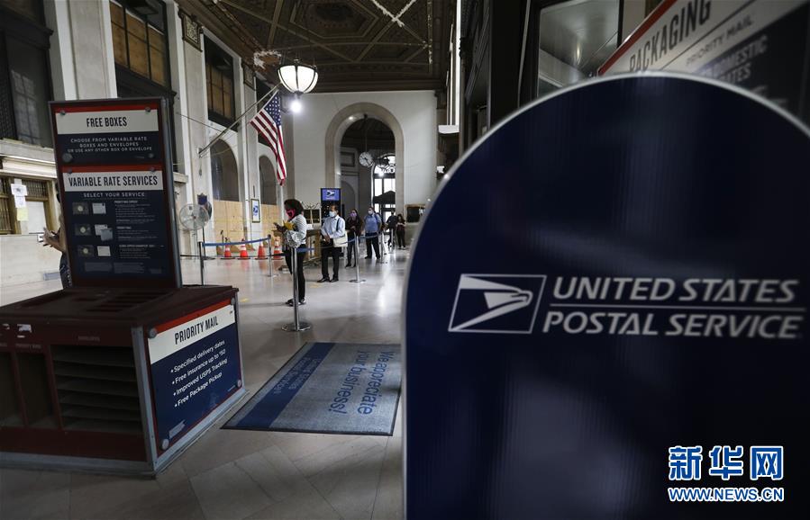 8月19日,顾客在美国纽约一个邮局等待办理业务。 新华社记者 王迎 摄