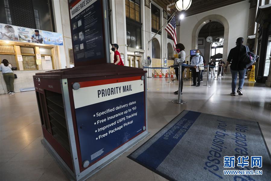 8月19日,人们在美国纽约一个邮局等待办理业务。 新华社记者 王迎 摄