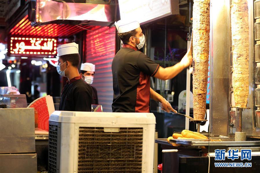 8月19日,在伊拉克巴格达,餐馆员工戴着口罩工作。 伊拉克近日进一步缩减每日宵禁时间,解除宵禁时间为每日5时至22时,取消每周四、五、六全天宵禁措施。伊拉克卫生部19日发表声明说,该国当天新增新冠确诊病例4093例,累计新冠确诊病例188802例,累计死亡病例6121例,累计治愈病例134369例。 新华社发